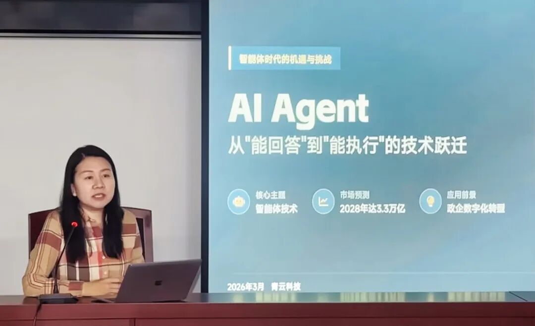 双方立足政府服务企业提质增效、政府内部管理流程优化的核心需求,分享技术实践、探讨发展方向,青云科技以 “中立安全+技术优势”为核心立足点,解读 AI Agent 行业发展浪潮,提出贴合政企实际需求的智能化解决方案,为区域政企数智化转型注入新思考。