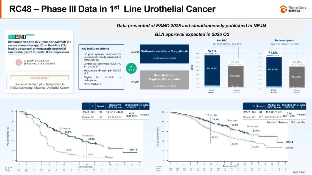 ● 胃癌(GC):两项分别针对一线HER2低表达和HER2阳性胃癌的全球多中心Ⅲ期研究(RC48-C039, RC48-C040)正在积极推进中。