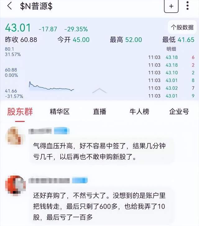 还有投资者表示,"还好弃购了,不然亏大了。没想到的是账户里把钱转走,最后只剩了600多,也给我弄了10股,最后亏了一百多"。