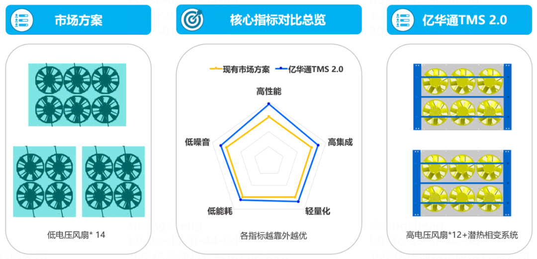 通过精确优化高压风扇的叶片数量及参数、风扇气动特性,实现了TMS 2.0系统的低噪音,怠速噪音65dB(A)优于市场方案13.33%,低10dB(A)。
