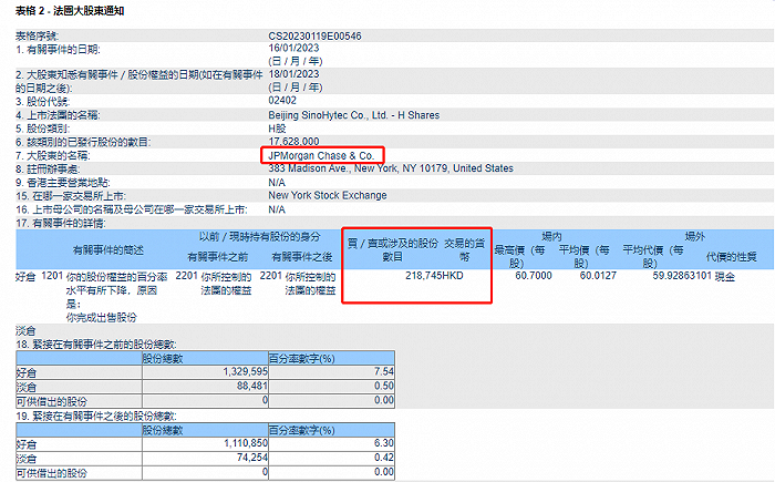 1月20日电,据港交所数据,摩根大通1月16日公布减持亿华通H股,持股比例由7.54%降至6.30%。