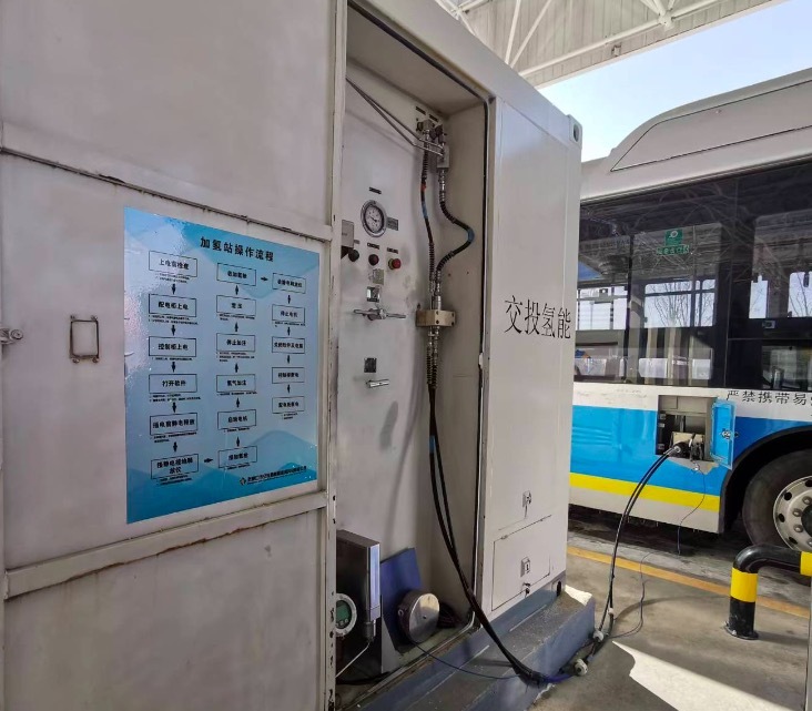 打开车辆“加氢盖”、插入加氢枪、启动加氢设备,到拔枪、关闭“加氢盖”,静待10分钟左右时间,一辆续航400公里左右的氢燃料电池公交车就缓缓驶出加氢站,继续投入运营。这是《每日经济新闻》记者在实地走访时看到的一幕,而同样的场景,已逐步在国内数个城市中上演。