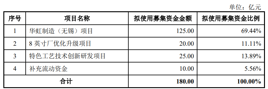 华虹公司本次发行募集资金总额2,120,300.00万元,扣除发行费用后募集资金净额为2,092,067.70万元。公司最终募集资金净额比原计划募多292,067.70万元。华虹公司2023年7月31日披露的招股说明书显示,公司拟募集资金180.00亿元,用于华虹制造(无锡)项目、8英寸厂优化升级项目、特色工艺技术创新研发项目、补充流动资金。