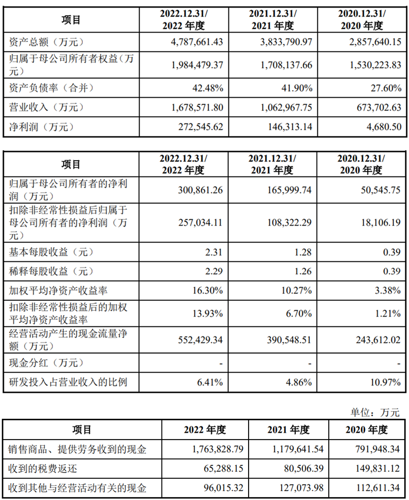 2020年至2022年,华虹公司的营业收入分别为673,702.63万元、1,062,967.75万元和1,678,571.80万元;净利润分别为4,680.50万元、146,313.14万元和272,545.62万元;归属于母公司所有者的净利润分别为50,545.75万元、165,999.74万元和300,861.26万元;扣除非经常性损益后归属于母公司所有者的净利润分别为18,106.19万元、108,322.29万元和257,034.11万元。