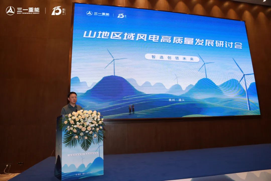 此次山地区域风电高质量发展研讨会上,贵州创星电力科学研究院电网部总经理、高级工程师陈和龙,中国电建集团贵州工程有限公司招采部主任陈华波,湖南三一智慧新能源设计有限公司副院长王铁强,三一重能产品经理唐胜武,三一重能解决方案中心副部长吴宝鑫,围绕西南山地区域风电项目建设及运维的特殊要求展开了系列宣讲。
