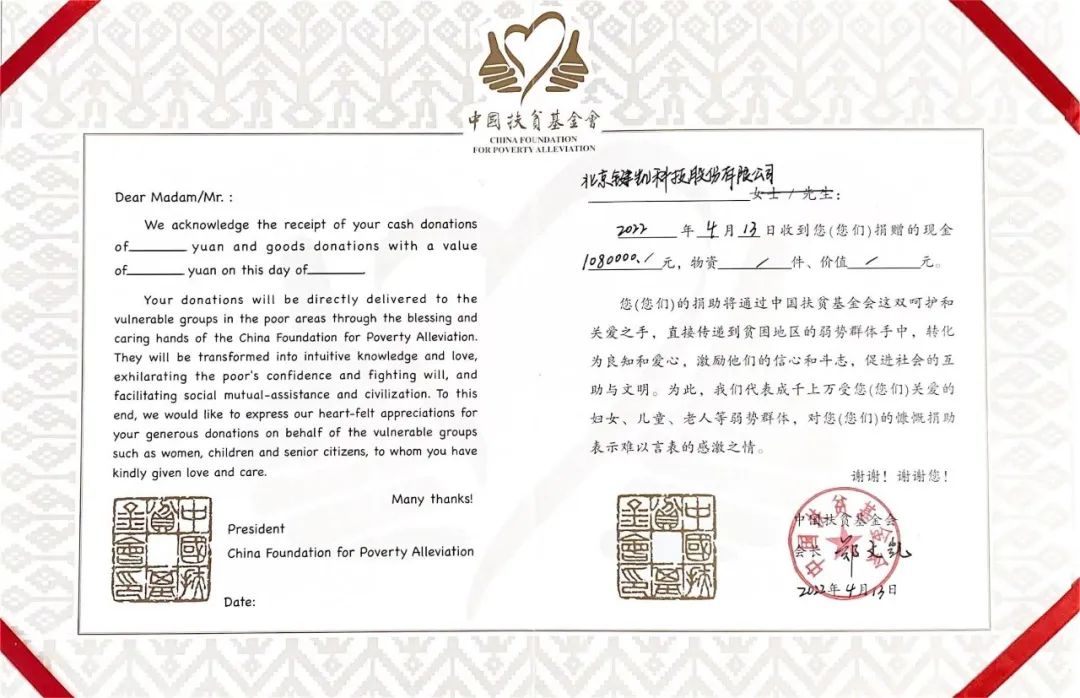 2022年4月,北京键凯科技股份有限公司(简称:键凯科技)向中国扶贫基金会捐赠108万元,助力【加油课堂-运动主题】项目,以支持改善乡村儿童运动条件,支持他们的健康成长。