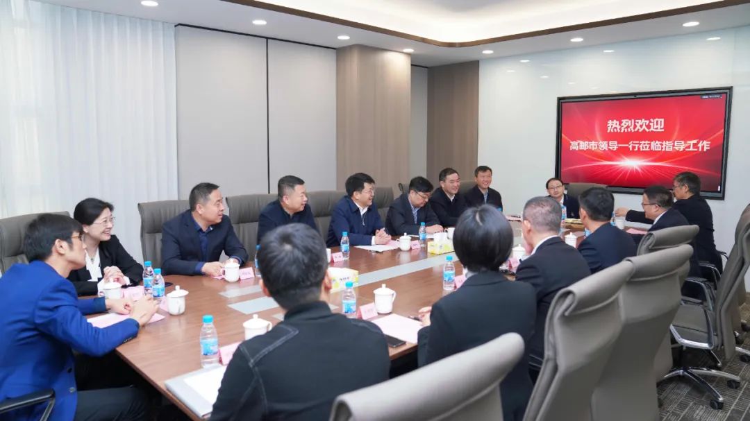 高邮市政府领导在公司董事长上官文龙的陪同下,参观了三孚新科数字展示中心,详细了解企业发展历程、产品研发生产、市场销售和未来发展愿景等情况。在随后召开的座谈会上,双方就加强务实合作进行了友好交谈。