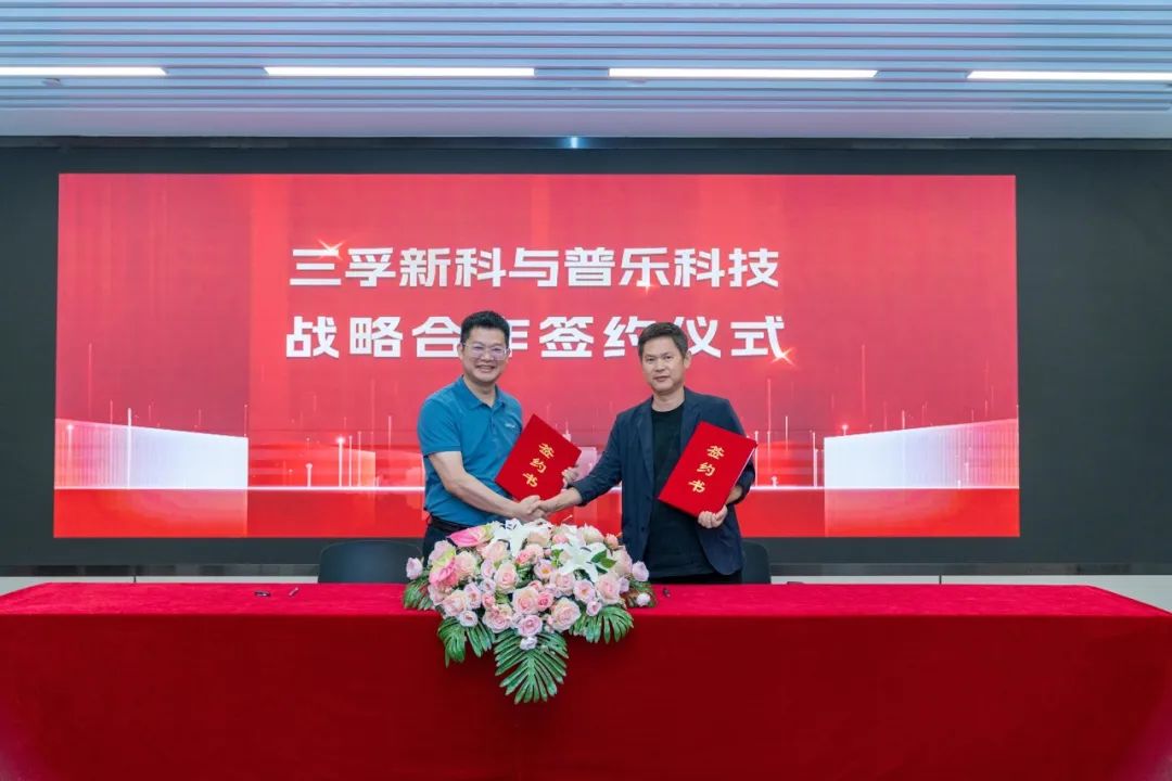 2023年9月11日,普乐新能源科技(泰兴)有限公司(简称:“普乐科技”)与广州三孚新材料科技股份有限公司(简称:“三孚新科”)在三孚新科总部举行战略合作签约仪式。普乐科技创始人、总经理欧文凯先生,三孚新科董事长上官文龙先生分别代表双方签署战略合作协议。三孚研究院院长朱平、三孚新科董事、副总裁陈维速等专家领导参加了本次仪式。