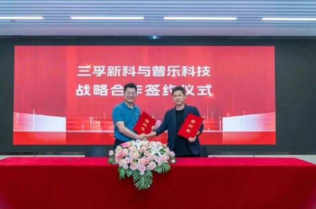 近日,普乐科技(POPSOLAR)与广州三孚新材料科技股份有限公司(简称:“三孚新科”)在三孚新科总部举行战略合作签约仪式。普乐科技创始人兼董事长欧文凯先生,三孚新科董事长上官文龙先生分别代表双方签署战略合作协议。普乐科技首席技术官及三孚研究院朱平等专家领导参加了本次签约仪式。