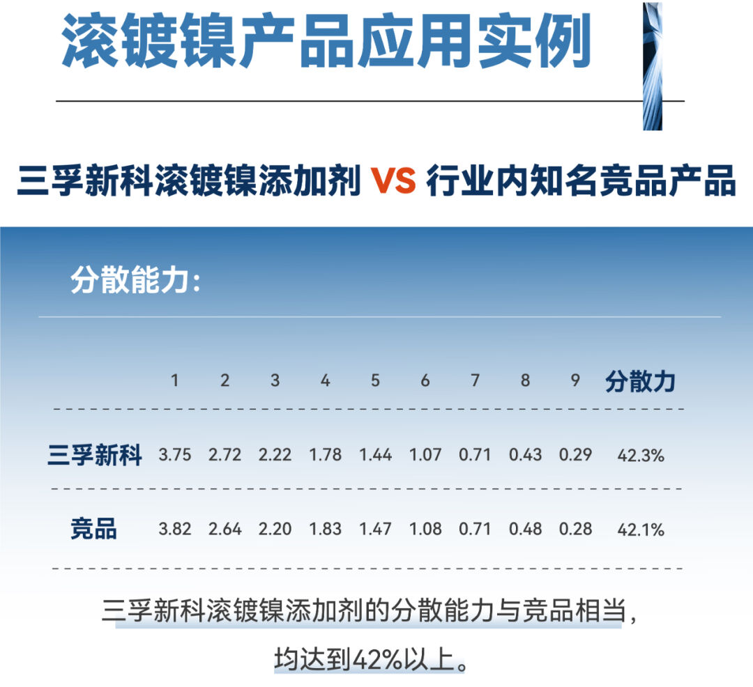 三孚新科环保滚镀镍系列产品已达到行业领先水平,并在行业头部企业客户中是实现了规模化应用。作为表面工程解决方案的供应商,三孚新科一直致力于用研发能力、核心技术、自研优质产品、技术服务为新能源、通用五金等现代制造业赋能。