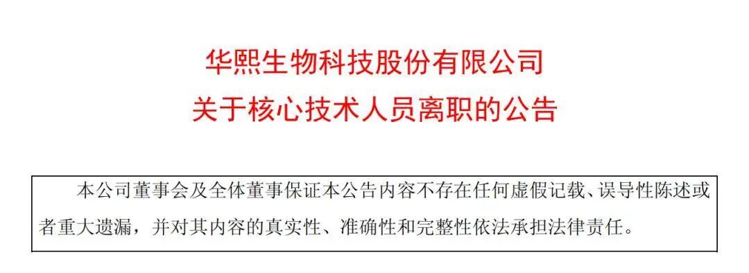 近日,国内玻尿酸龙头企业华熙生物(688363.SH)发布公告称,公司核心技术人员周贤龙因个人原因辞去职务,不再担任公司及子公司任何职位。公司表示,其离职不会对公司的技术优势、核心竞争力、业务发展和产品创新造成重大影响。