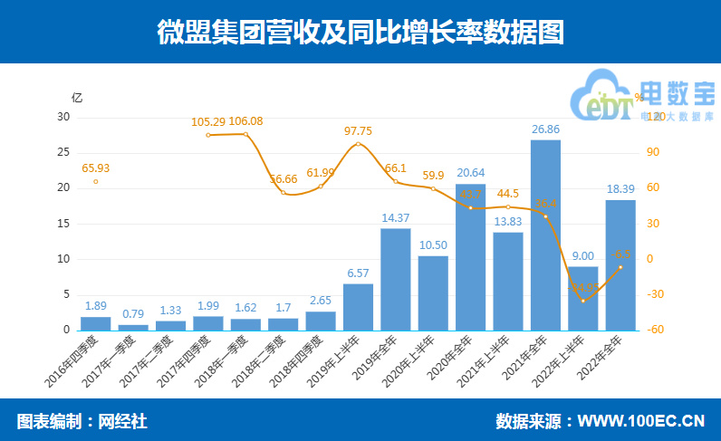 净利润方面,微盟集团2022年净利润亏损133.53亿元,同比减少197.18%;2022年微盟加速布局视频号商业化,报告期内微盟视频号商家总交易额(GMV)同比增长3倍,接入商家数同比增长59.8%。从2022年6月开始,微盟商家解决方案的广告毛收入实现探底反弹,下半年完成58亿元,环比增长37.9%。