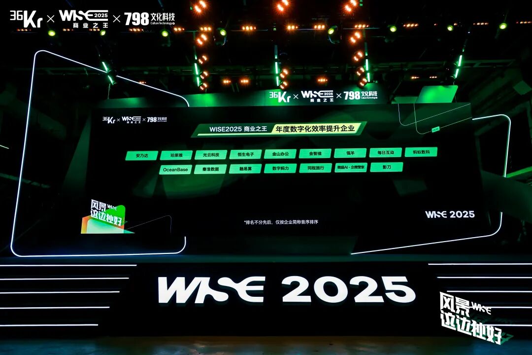 而「WISE2025商业之王年度数字化效率提升企业」,正是这样一批践行者,它们不断推动用户企业从「流程数字化」迈向「管理数字化」,从「管理数字化」走向「经营数字化」。无论是供应链协同、履约效率、生产调度,还是财务透明度、组织协同能力,它们都以可量化的方式让用户企业真正看到效率提升的复利。
