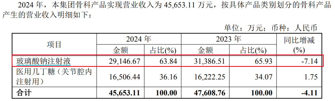 不仅如此,于报告期内,骨科产品实现营收4.57亿元,同比下滑4.11%。其中,玻璃酸钠注射液在浙江等地集采后价格下滑,收入同比减少7.14%。另外,防粘连及止血产品营收同比下降0.58%。