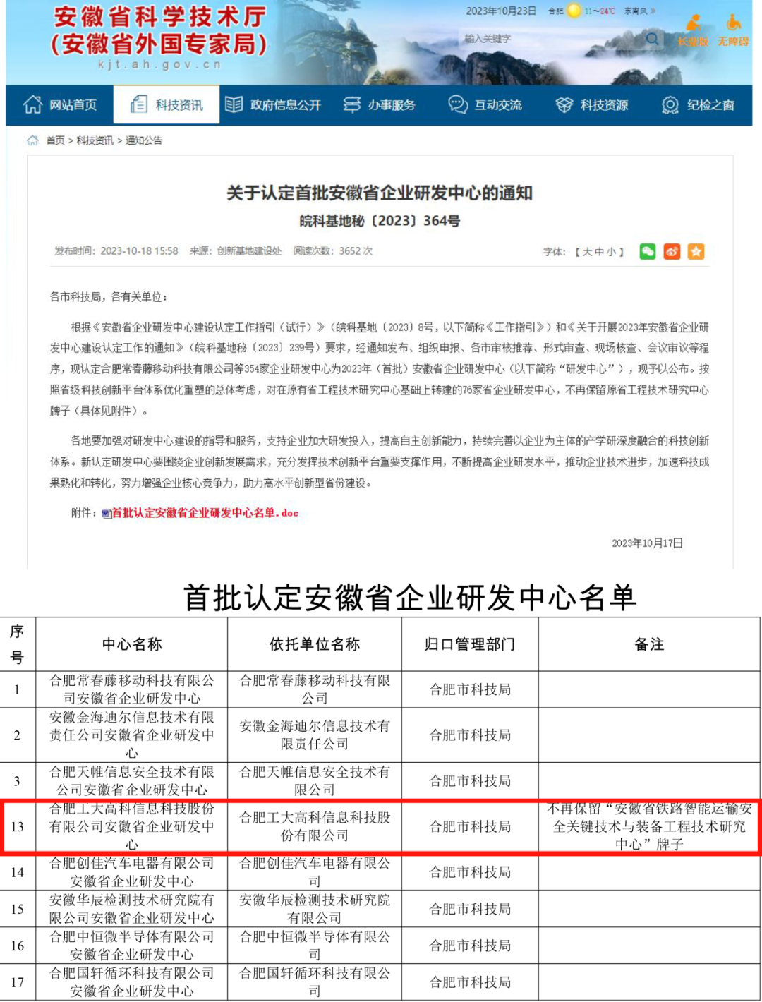 近日,安徽省科学技术厅公布了首批安徽省企业研发中心认定名单,工大高科凭借优秀的创新能力成功获批认定。