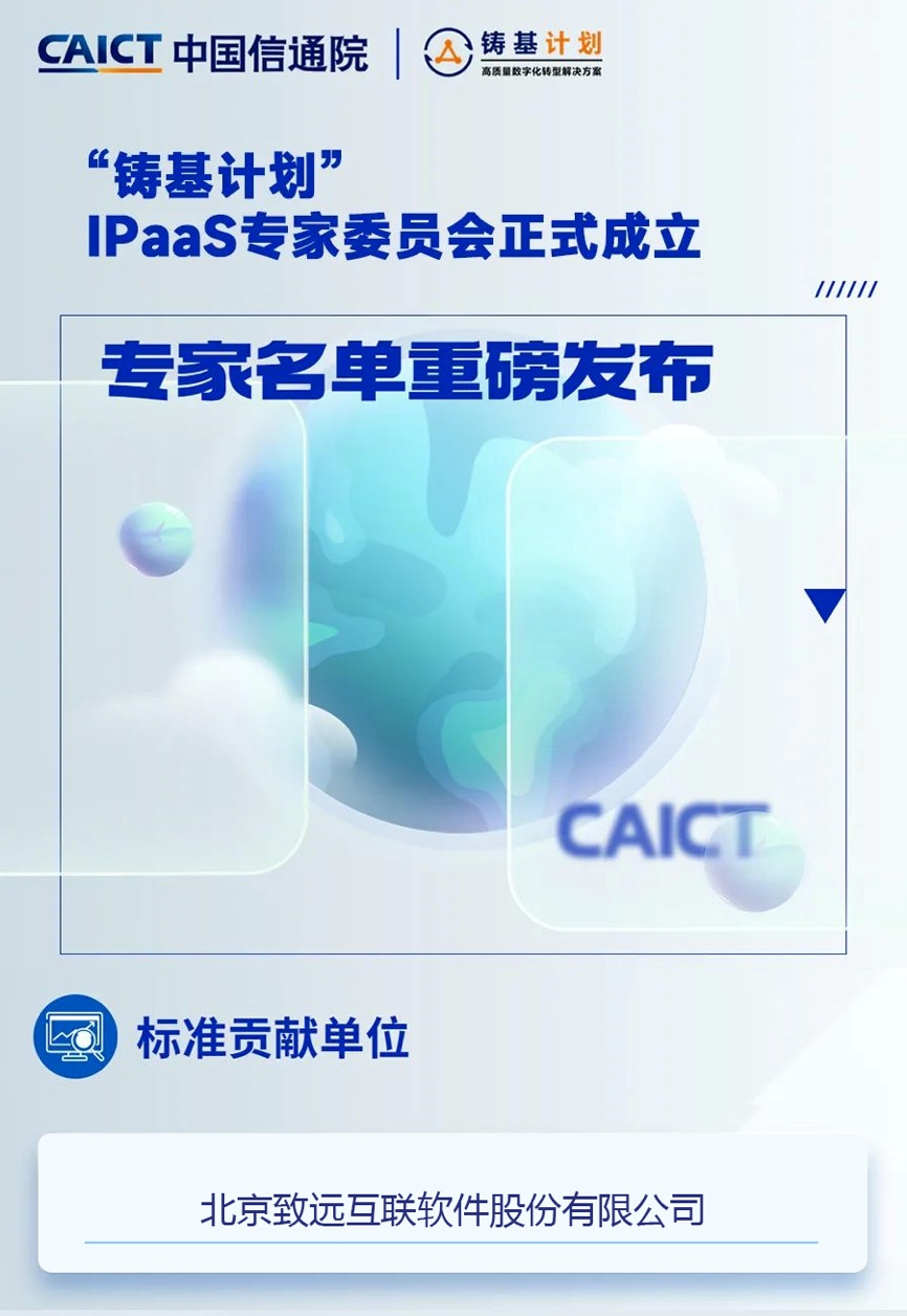 近日,信通院正式成立"铸基计划--IPaaS专家委员会",并公开标准贡献单位和专家委员名单。致远互联作为IPaaS平台的深耕者和积极贡献者,以领先的平台技术和高效的集成应用助力标准建设,成为“铸基计划”IPaaS标准贡献单位。