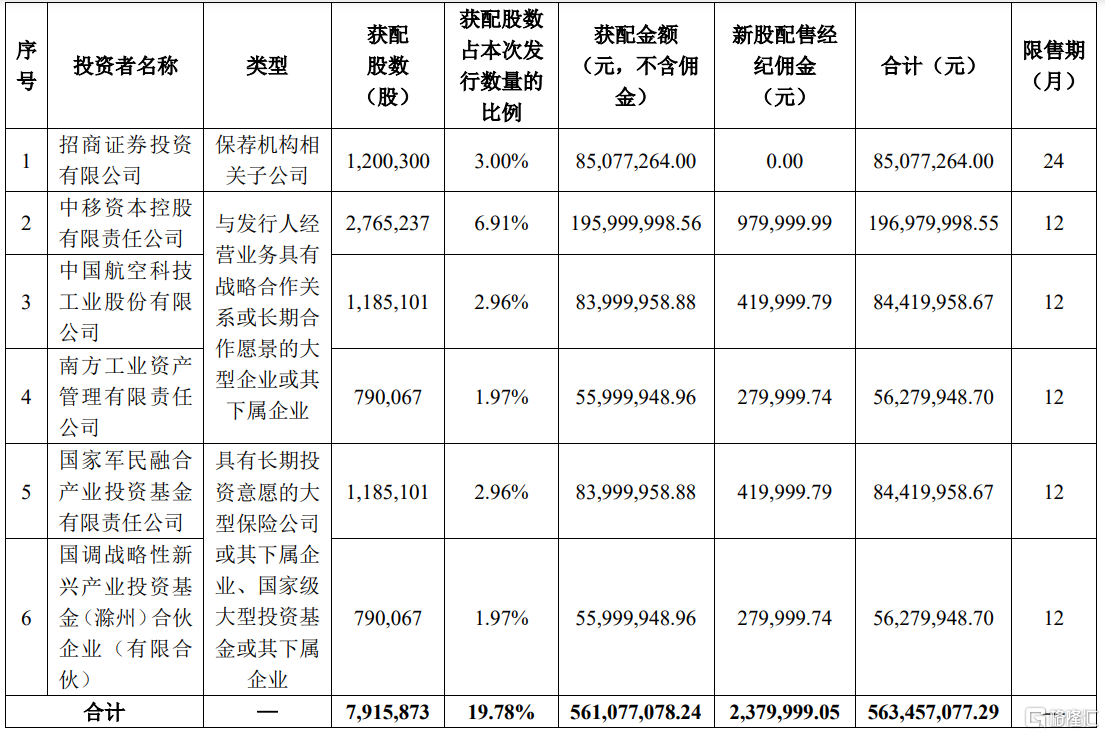 国博电子(688375.SH)公布首次公开发行股票并在科创板上市发行结果公告,此次发行战略配售的最终情况如下: