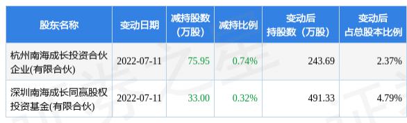 7 月 12 日奥来德发布公告《688378:关于持股 5%以上股东减持超过 1%的提示性公告》,其股东杭州南海成长投资合伙企业(有限合伙)、深圳南海成长同赢股权投资基金(有限合伙)于 2022 年 6 月 23 日至 2022 年 7 月 11 日间合计减持 108.95 万股,占公司目前总股本的 1.0612%,变动期间该股股价下跌 1.04%,截止 7 月 11 日收盘报 39.12 元。