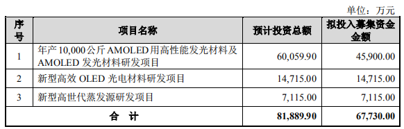 奥来德最终募集资金净额较原计划多3.83亿元。奥来德2020年8月28日发布的招股说明书显示,公司计划募集资金6.77亿元,分别用于年产10,000公斤AMOLED用高性能发光材料及AMOLED发光材料研发项目、新型高效OLED光电材料研发项目、新型高世代蒸发源研发项目。