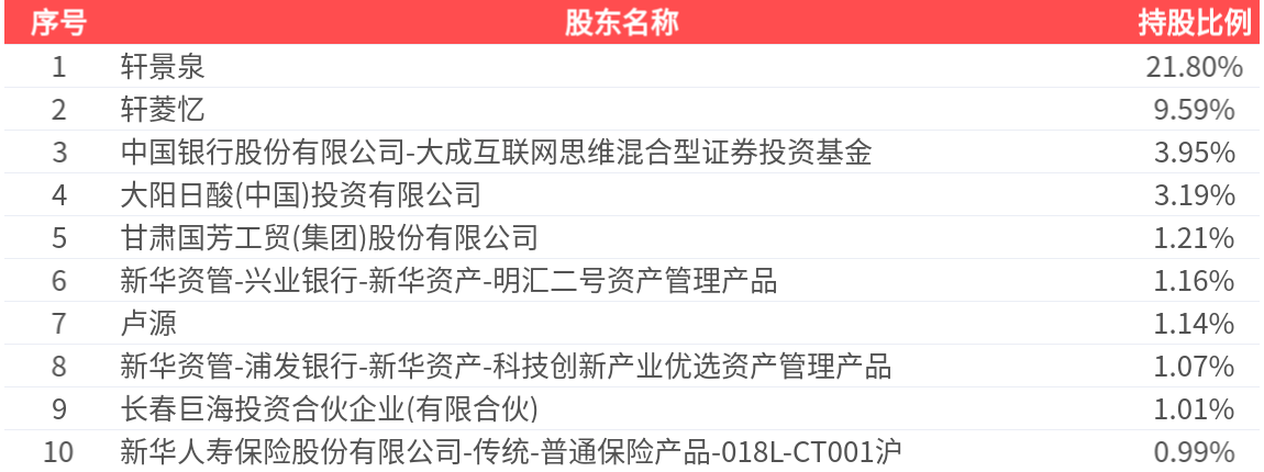 公司股东户数为6443户,前十大股东持股数量为9392.52万股,占总股本比例为45.12%,前十大股东持股情况如下: