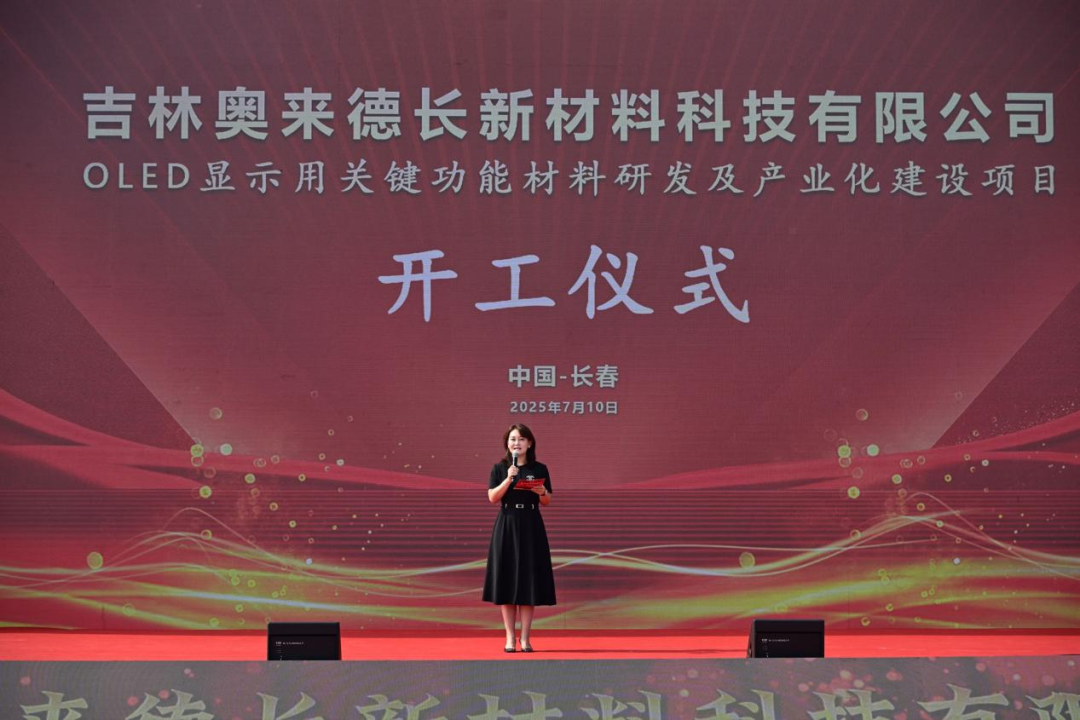上午8时18分,开工仪式正式开始。吉林奥来德长新材料科技有限公司总经理轩菱忆担任主持人,她在开场中介绍,此次开工的OLED显示用关键功能材料研发及产业化建设项目,将加速光敏聚酰亚胺材料、薄膜封装材料、低温彩色光刻胶、有机发光材料的国产化进程,助力OLED全产业链实现安全可控,标志着奥来德迈入全新发展阶段。