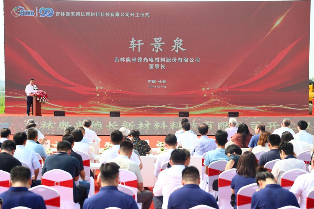 吉林奥来德光电材料股份有限公司董事长、总经理轩景泉在致辞中回顾了企业二十年发展历程。他表示,奥来德自创立以来,始终以突破“卡脖子”技术、实现“国产化”替代为使命,从实验室走向产业前沿,攻克多项关键核心技术,斩获数百项专利,核心材料已实现主流品牌高端产品规模化应用。此次开工的OLED显示用关键功能材料研发及产业化建设项目占地13.6万平方米,建成后将成为国际一流的OLED材料研发与生产基地,大幅提升产能与技术水平,为产业链供应链稳定提供关键支撑。