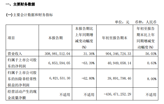 10月27日晚,华光新材(688379.SH)发布公告。2021年第三季度,华光新材实现营收3.09亿元,同比增31.36%;实现净利润685.36万元,同比降63.39%。