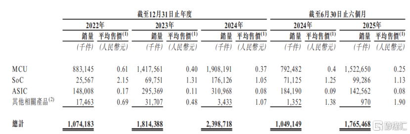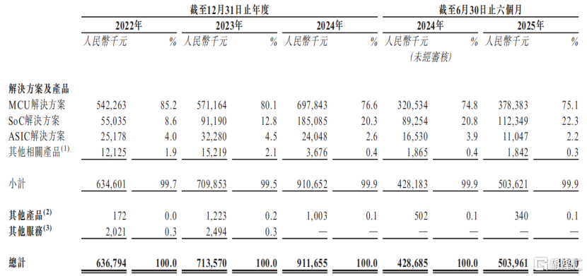 报告期内,中微半导的收益主要来自MCU,2022年MCU的收入占比为85.2%,不过2025年上半年降至75.1%,SoC的收入占比则由8.6%提升至22.3%。