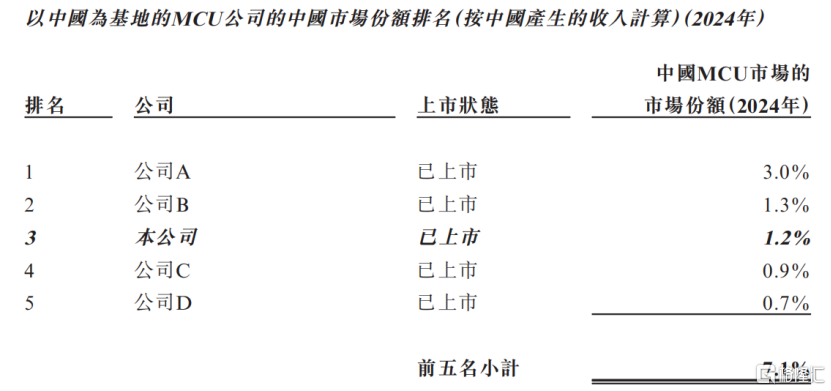 以中国为基地的MCU公司的中国市场份额排名,来源:招股书