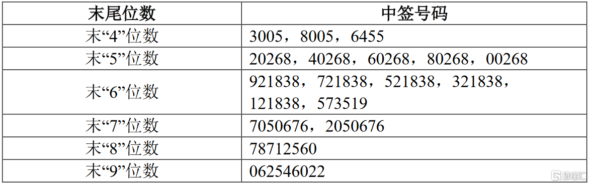 凡参与网上发行申购帝奥微股票的投资者持有的申购配号尾数与上述号码相同的,则为中签号码。中签号码共有44074个,每个中签号码只能认购500股帝奥微股票。