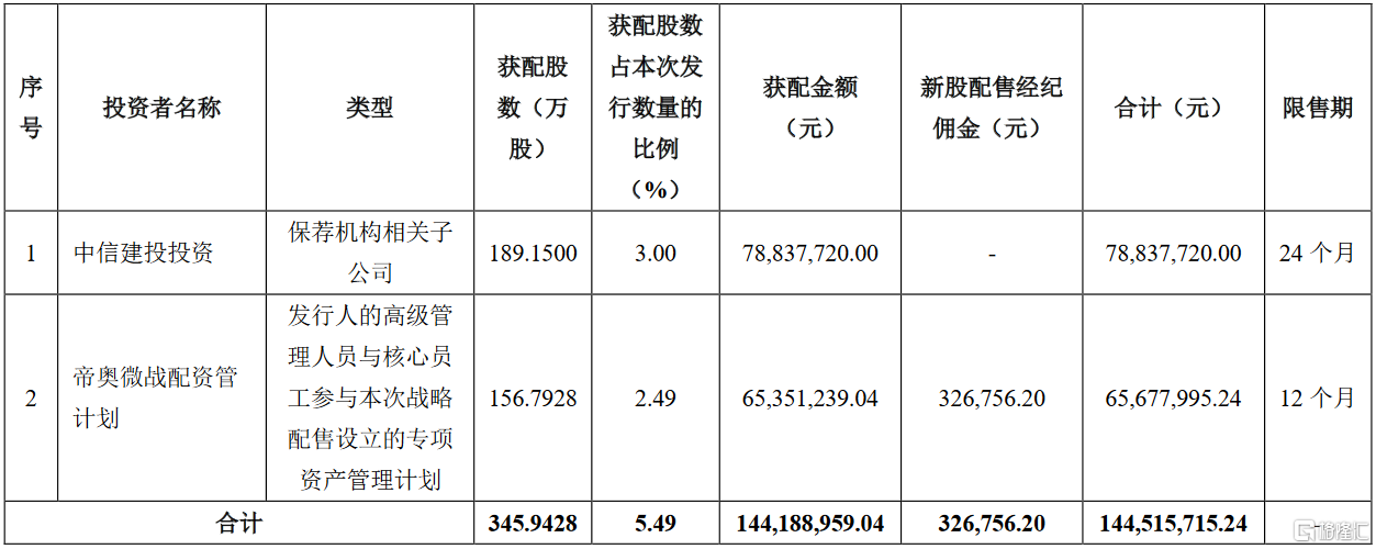 8月15日丨帝奥微(688381.SH)披露首次公开发行股票并在科创板上市网下初步配售结果及网上中签结果,其中,战略配售最终结果如下:
