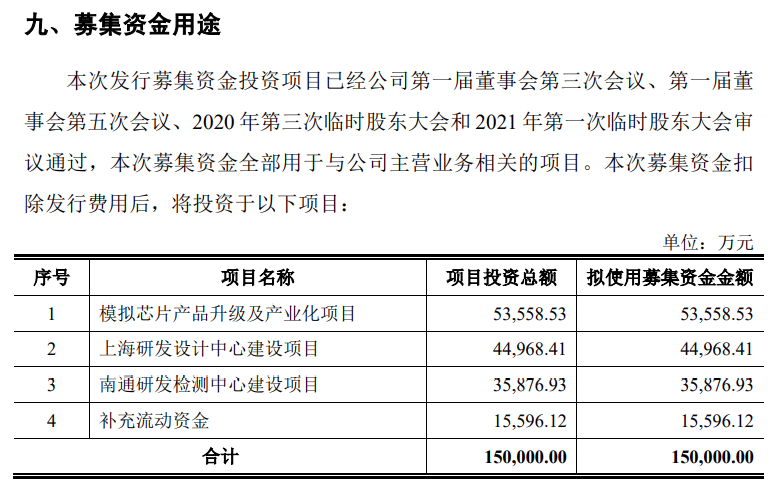 8月3日,帝奥微于科创板开启招股环节,本次发行公司拟募资15亿元,其中5.35亿元投入模拟芯片产业升级及产业化项目,4.50亿元投入上海研发设计中心建设项目,3.59亿元南通研发检测中心建设项目,剩余1.56亿元用于补充流动资金。
