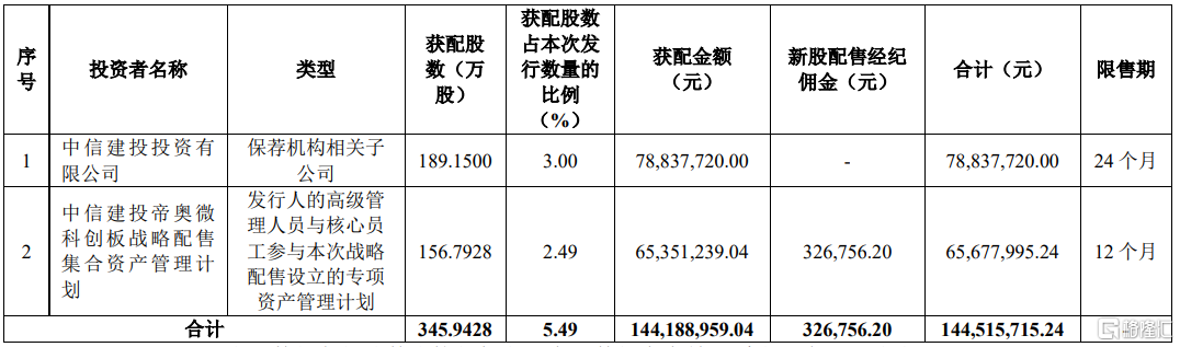 格隆汇8月16日丨帝奥微(688381.SH)公布首次公开发行股票并在科创板上市发行结果公告,战略投资者缴款认购结果如下: