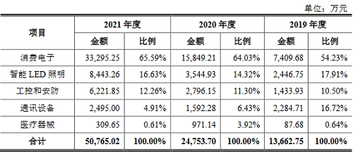 招股书显示,帝奥微2019年度、2020年度、2021年度实现营业收入分别为:1.37亿元、2.48亿元及5.08亿元,归属于母公司所有者的净利润分别为:253.92万元、4017.67万元及1.65亿元。受半导体行业景气度提升的影响,报告期内,公司营业收入年均复合增长率高达92.74%。