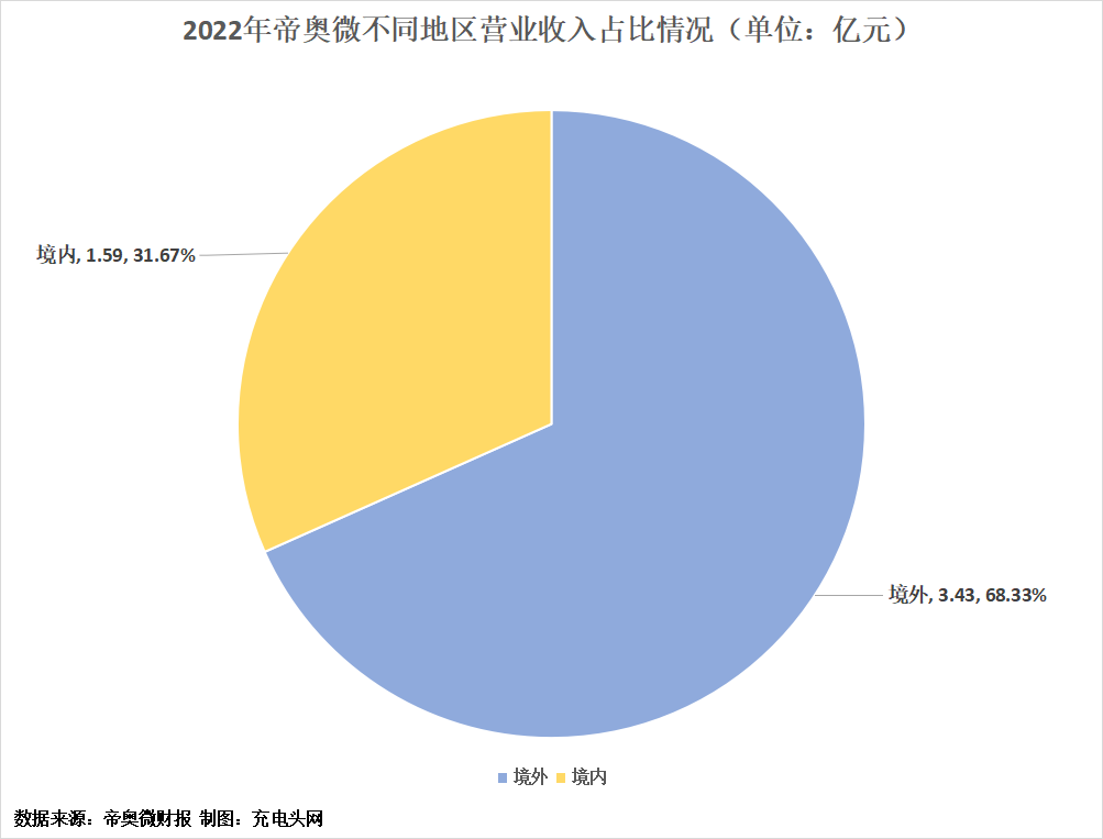 报告期内,帝奥微不同地区业务总体经营情况如上图。2022年,帝奥微境外收入3.43亿元,收入占比68.33%;境内收入1.59亿元,收入占比31.67%。