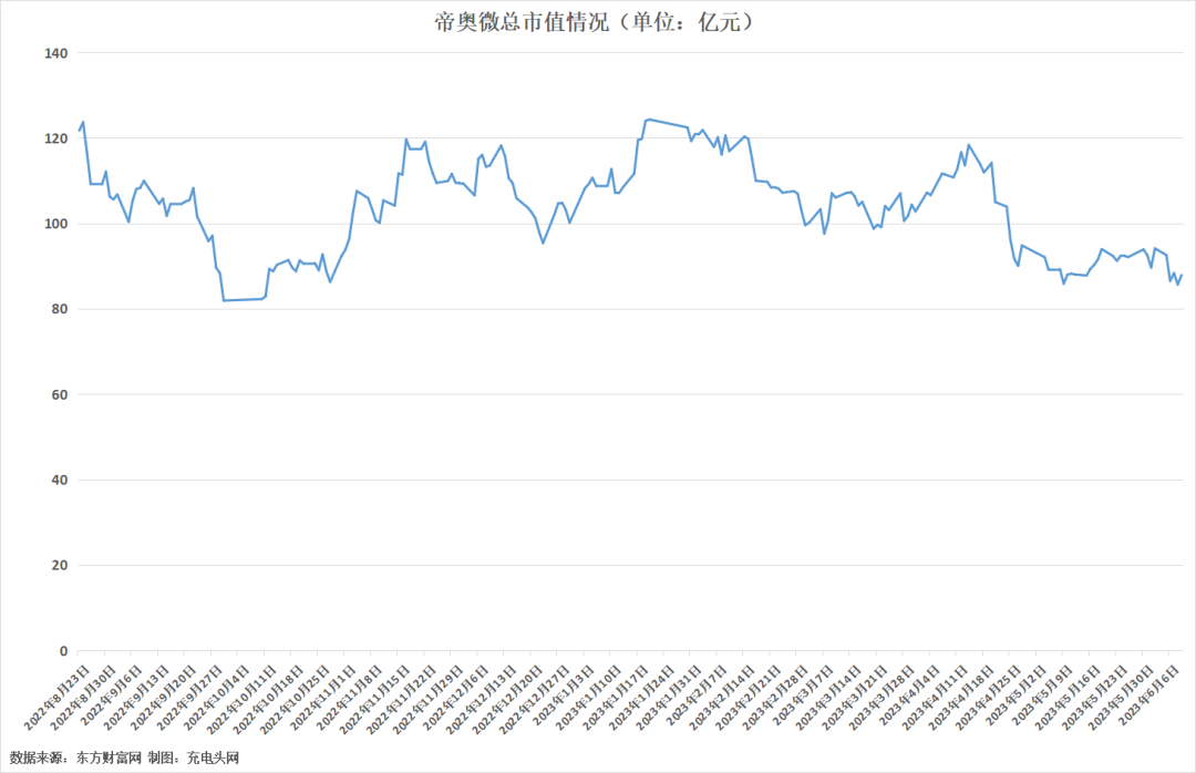 从帝奥微上市以来市值情况看,2023年1月20日,帝奥微市值达到最高124.33亿元;2022年9月30日最低为81.91亿元。截至2023年6月9日,帝奥微总市值为87.89亿元。