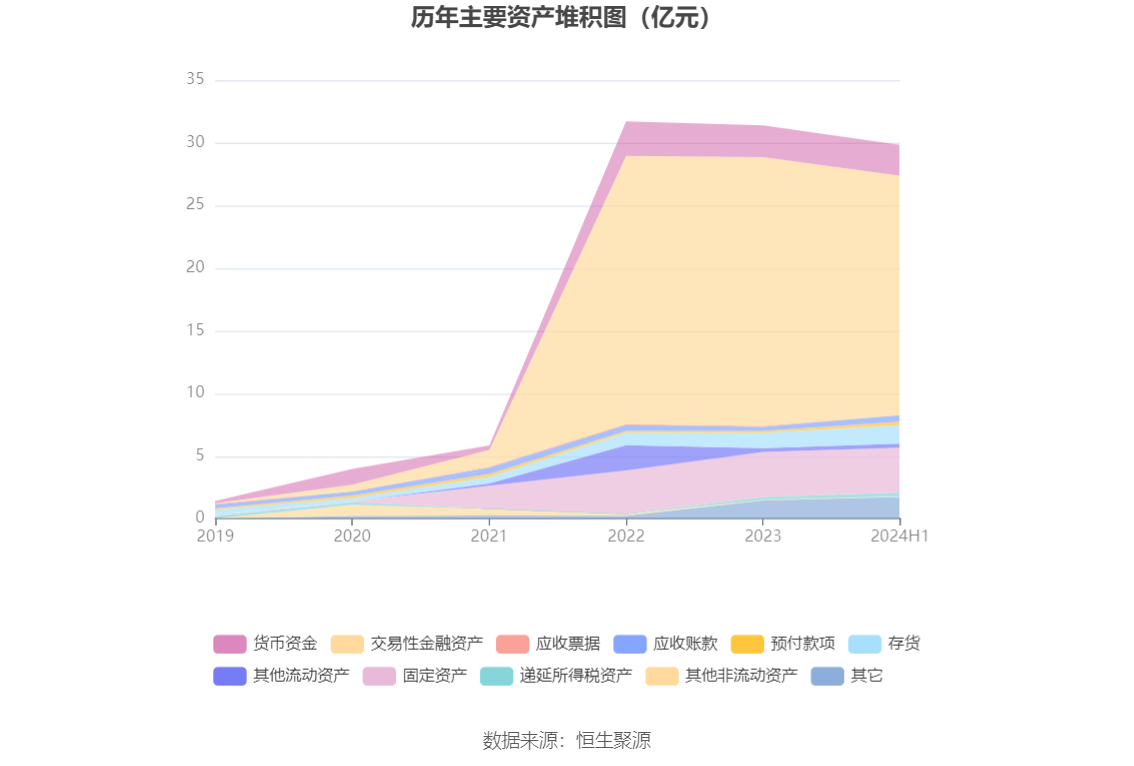 资产重大变化方面,截至2024年上半年末,公司交易性金融资产较上年末减少10.87%,占公司总资产比重下降4.26个百分点;其他非流动金融资产较上年末增加76.19%,占公司总资产比重上升1.08个百分点;存货较上年末增加21.18%,占公司总资产比重上升1.07个百分点;应收账款较上年末增加62.53%,占公司总资产比重上升0.72个百分点。