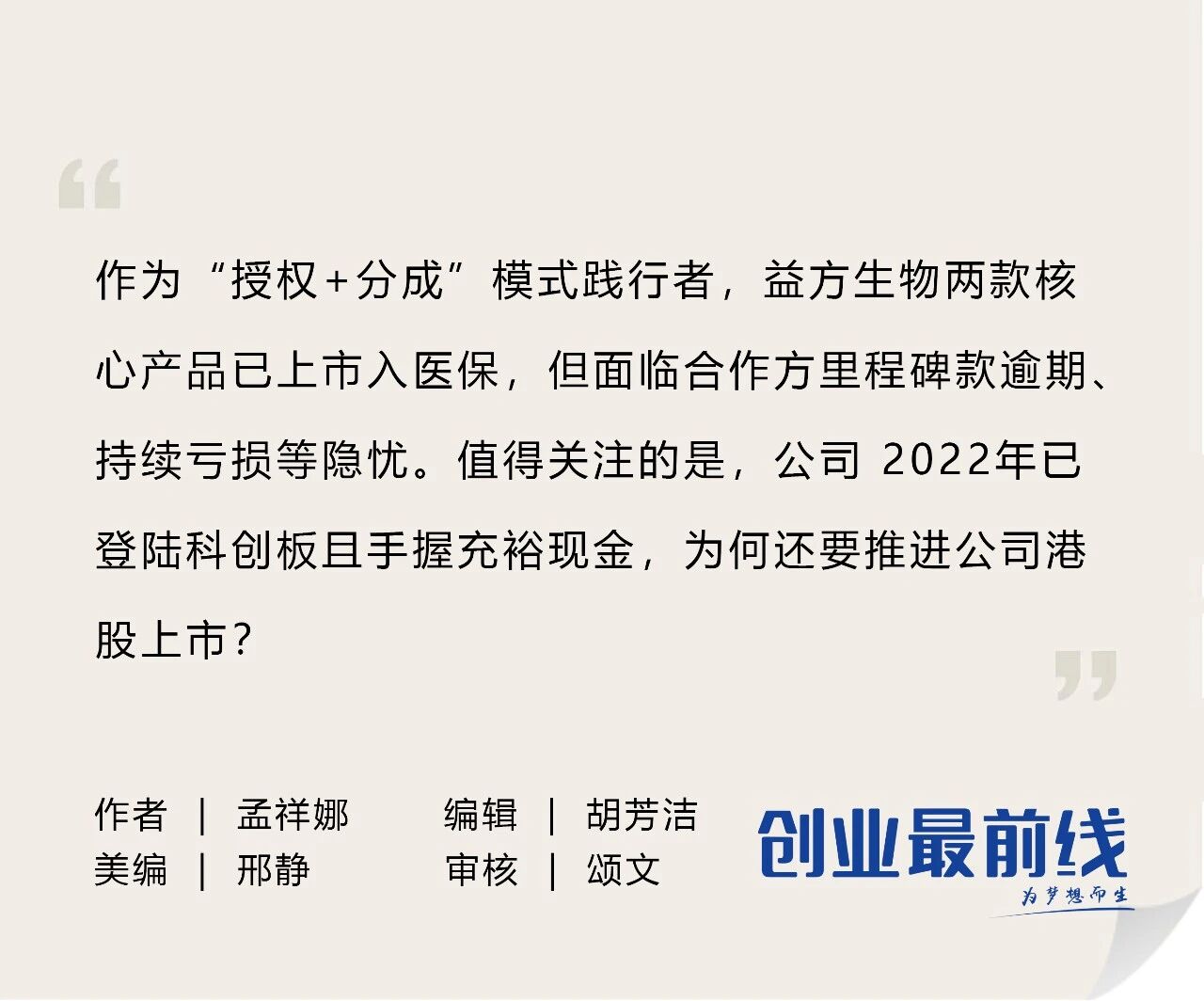 综合来看,益方生物的港股上市之路,折射出当前中国创新药企在授权模式热潮下的现实困境与资本抉择。一方面,公司凭借“License-out”模式快速实现了产品商业化与医保覆盖,展现了研发转化的效率;但另一方面,过度依赖授权合作也暴露了回款风险、盈利模式单一等隐忧。