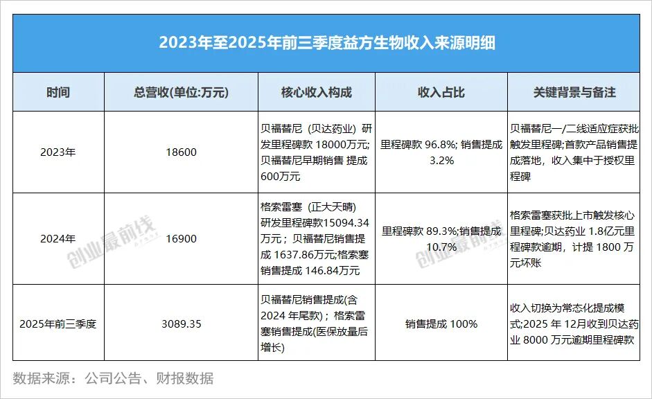 2023年,公司营收以贝福替尼1.8亿元研发里程碑款为主,占比超96%,销售提成占比仅3.2%;2024年,公司收入重心转向格索雷塞的1.51亿元里程碑款,同时两款产品销售提成占比提升至10.7%;2025年前三季度则完全依靠两款产品的销售提成,且因医保放量实现收入同比61.27%的增长。