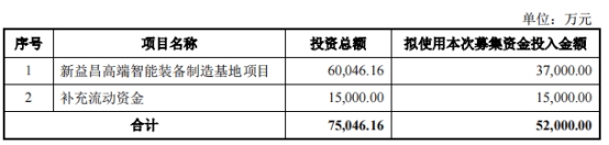 昨日晚间,新益昌发布了《向不特定对象发行可转换公司债券预案》。本次向不特定对象发行可转换公司债券的募集资金总额不超过52,000.00万元(含本数),扣除发行费用后的募集资金净额将用于投入以下项目:新益昌高端智能装备制造基地项目、补充流动资金。