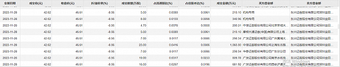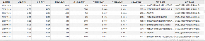 11月28日,复旦微电今日大宗交易成交558.76万股,成交额2.38亿元,占当日总成交额的62.08%,成交价42.62元,较市场收盘价折价8.56%。