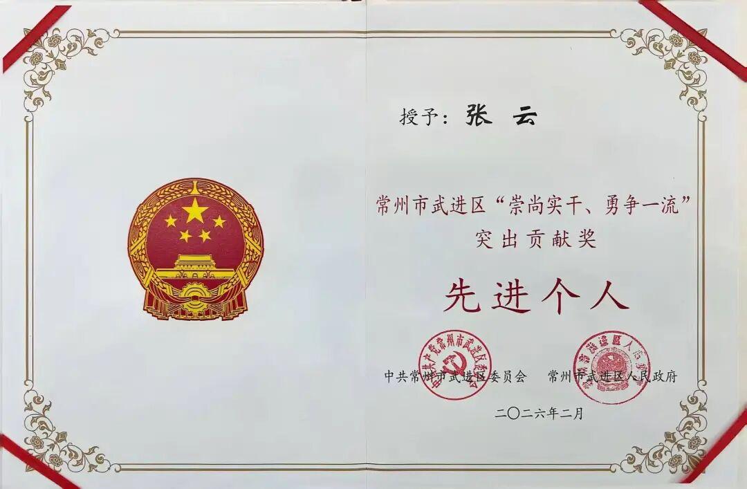 公司在2025年度还获得常州市武进区“崇尚实干、勇争一流”突出贡献奖先进集体;董事长张云获得先进个人。