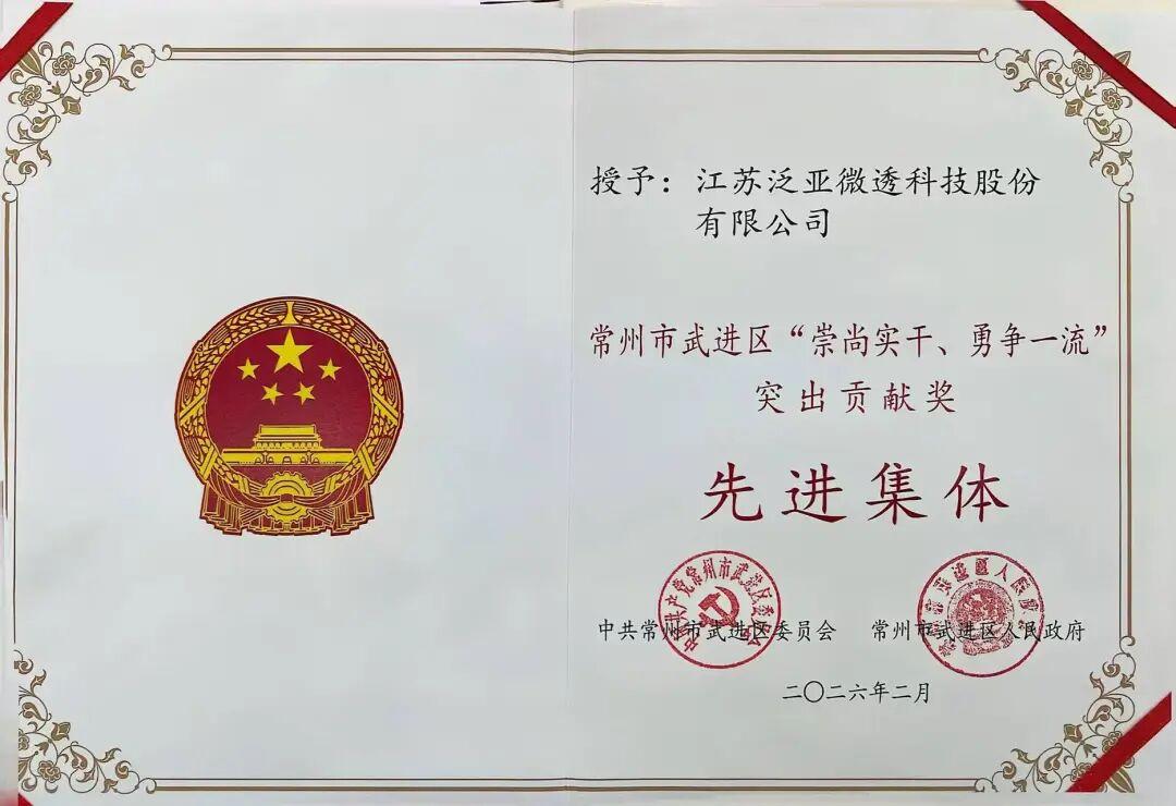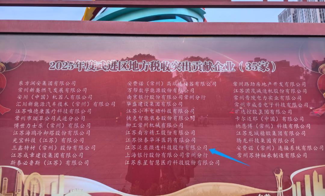 泛亚微透荣获“2025年度武进区地方税收突出贡献企业”称号。