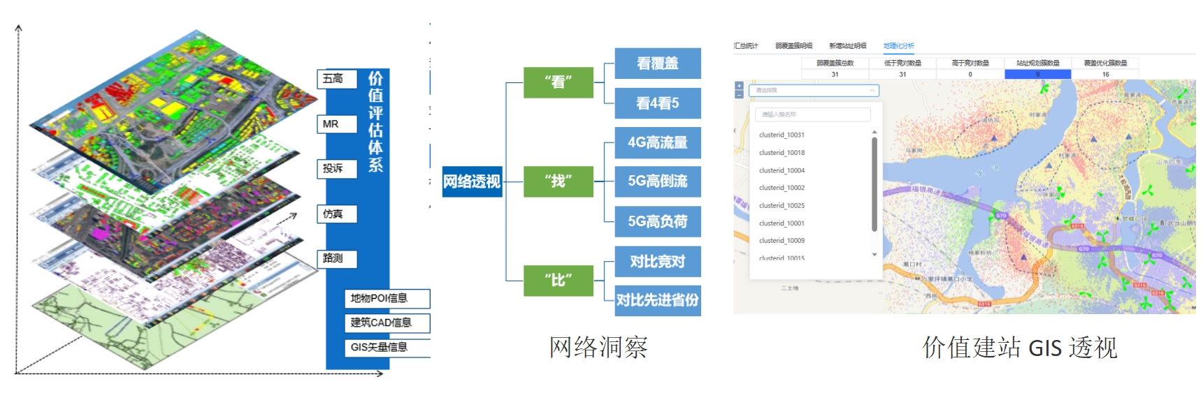 HiNET智能化平台通过POI识别聚焦重点区域、重点口碑、区域竞争等价值场景。基于用户分布和弱覆盖定位对场景进行科学判定,分级、分档,加强高价值区域建设权重。并结合运营商竞对情况,给出竞对对比分析。基于历史数据的流量预测,将站点规划在用户最需要的地方。筛选业务增长潜力场景,重点关注高校、交通枢纽、体育馆等局部高热场景容量需求,按需精准扩容,确保5G网络能力资源定向、定点投入。