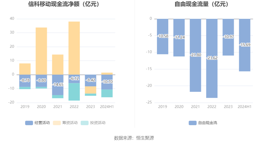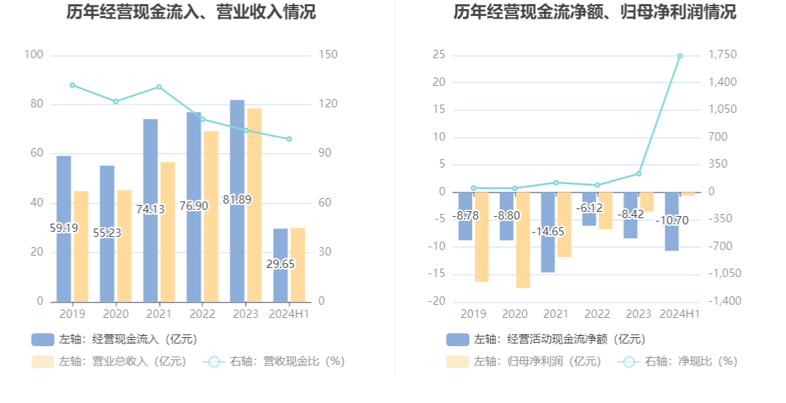进一步统计发现,2024年上半年公司自由现金流为-15.69亿元,上年同期为-1.79亿元。