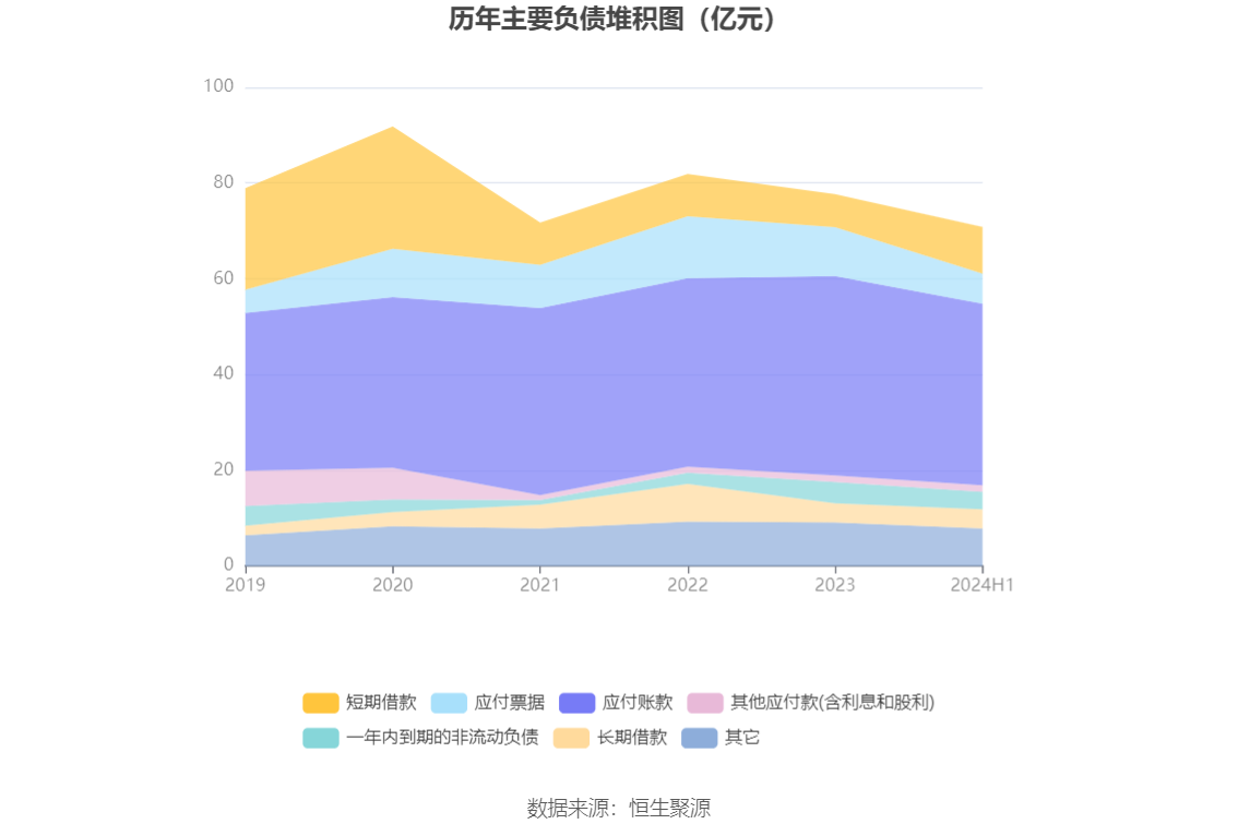 负债重大变化方面,截至2024年上半年末,公司应付票据较上年末减少38.03%,占公司总资产比重下降2.43个百分点;应付账款较上年末减少8.93%,占公司总资产比重下降1.06个百分点;短期借款较上年末增加41.15%,占公司总资产比重上升2.35个百分点,主要系新增借款;应付职工薪酬较上年末减少43.40%,占公司总资产比重下降0.70个百分点。