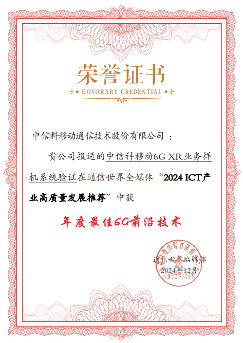 在全球科技浪潮汹涌澎湃的时代背景下,通信行业正以前沿创新者与变革引领者的姿态,重塑着世界经济与社会的发展格局。在ICT产业迈向高质量发展的征程中,新质技术的涌现成为了最为耀眼的亮点。人工智能、量子计算、6G通信等前沿领域的技术突破不断为ICT产业注入新的活力,2024年,这些新质技术更是取得了实质性的进展并逐步走向应用落地阶段。作为通信行业的资深观察者与深度参与者,通信世界挖掘行业的先锋力量与卓越成就,近期发布了“2024 ICT产业高质量发展推荐”,中信科移动斩获三项大奖。