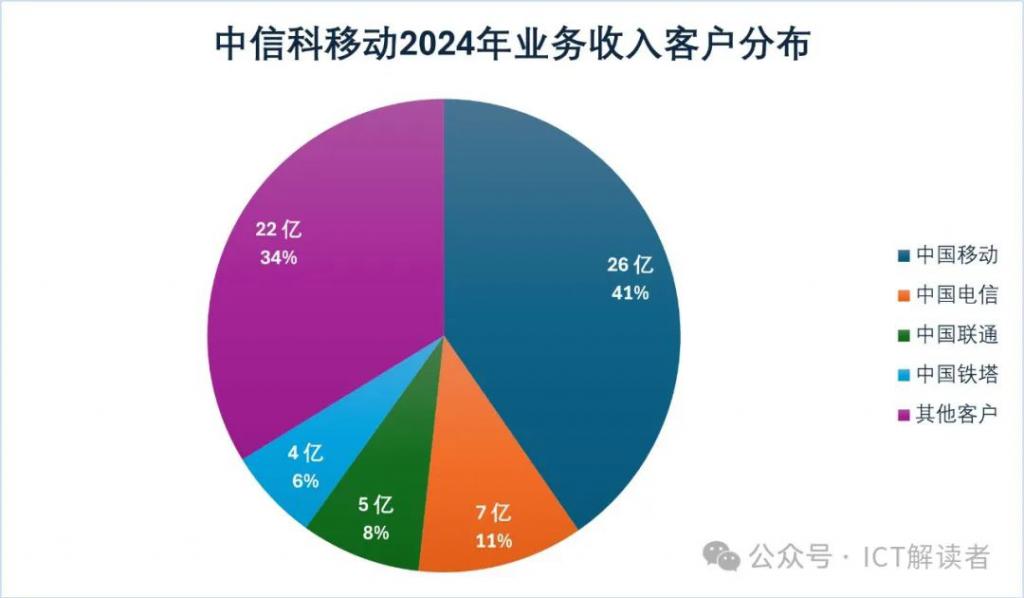 作为国内专业的移动通信网络部署综合解决方案提供商,中信科移动的客户主要集中于中国移动、中国电信、中国联通、中国铁塔等通信运营商,2024 年来自这前四大客户的销售额占到年度收入的 65%以上,其中仅来自中国移动一家的销售收入占比就高达 40%,因此以中国移动为首的通信运营商的采购政策变化直接影响了中信科移动的营收表现。