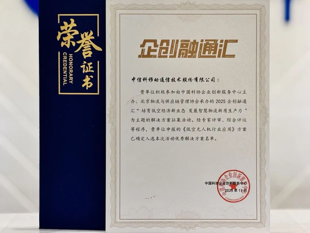 近日,在由 中国科协企业创新服务中心 主办, 北京物流与供应链管理协会 、 北京物资学院 等单位联合承办的“企创融通汇——2025低空经济智慧物流主题产业活动”中, 中信科移动 《低空无人机行业应用》解决方案成功入选优秀解决方案名单,标志着 中信科移动 在低空经济领域的技术实力和创新应用获得行业权威认可。