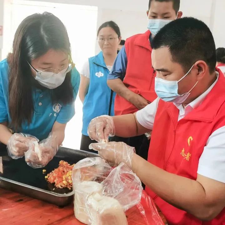 培训结束后,青年志愿者和儿童志愿者一起包起了饺子,与敬老院的老人们一起品尝美味佳肴。